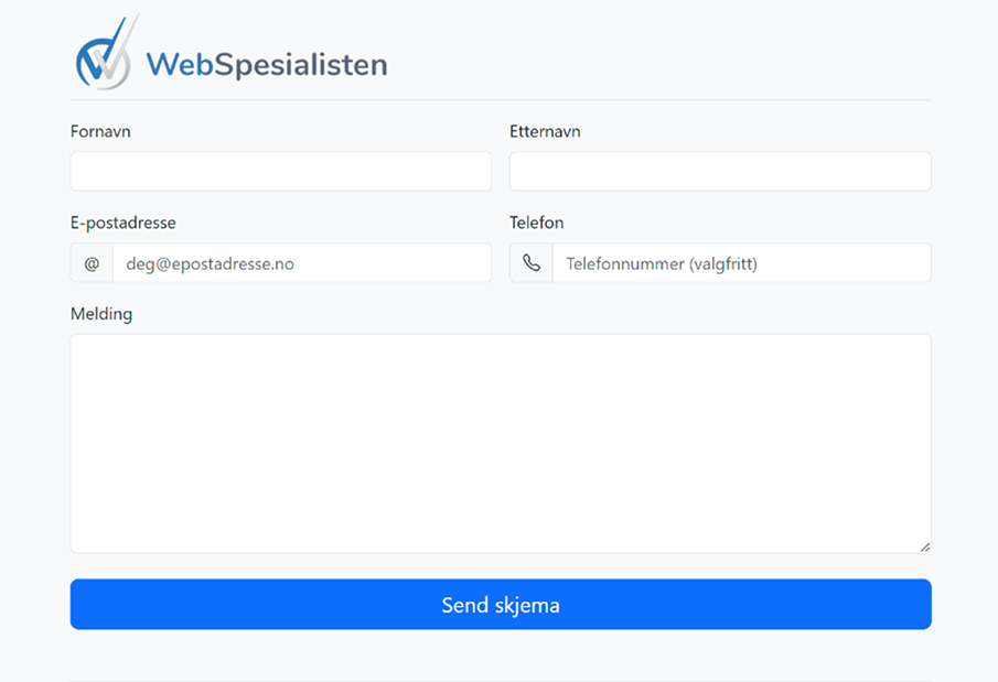 Løsningen er utviklet og driftes av Webspesialisten AS. Vi har valgt å lage løsningen for sendmelding.no litt anonym slik at dine kunder ikke vil oppfatte tjenesten som reklame.